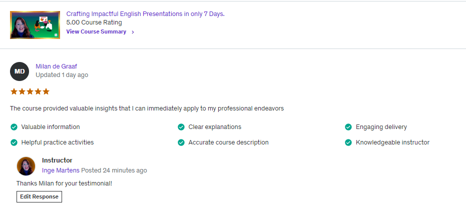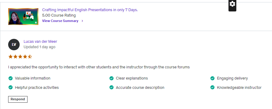 "By enrolling in our 7-Day English Presentation Bootcamp, you will significantly boost your chances of success in your international career"